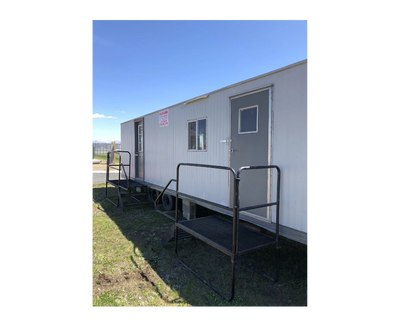 All of our office containers and trailers are equipped with air conditioning, heat, electrical outlets, plan tables, and overhead lighting. We offer ground-level office containers, which provide convenient office entry/exit with no stairs. For those looking for a more traditional mobile business office, mobile office trailers are also available. For these, we offer OSHA-approved steel stairs for rent.